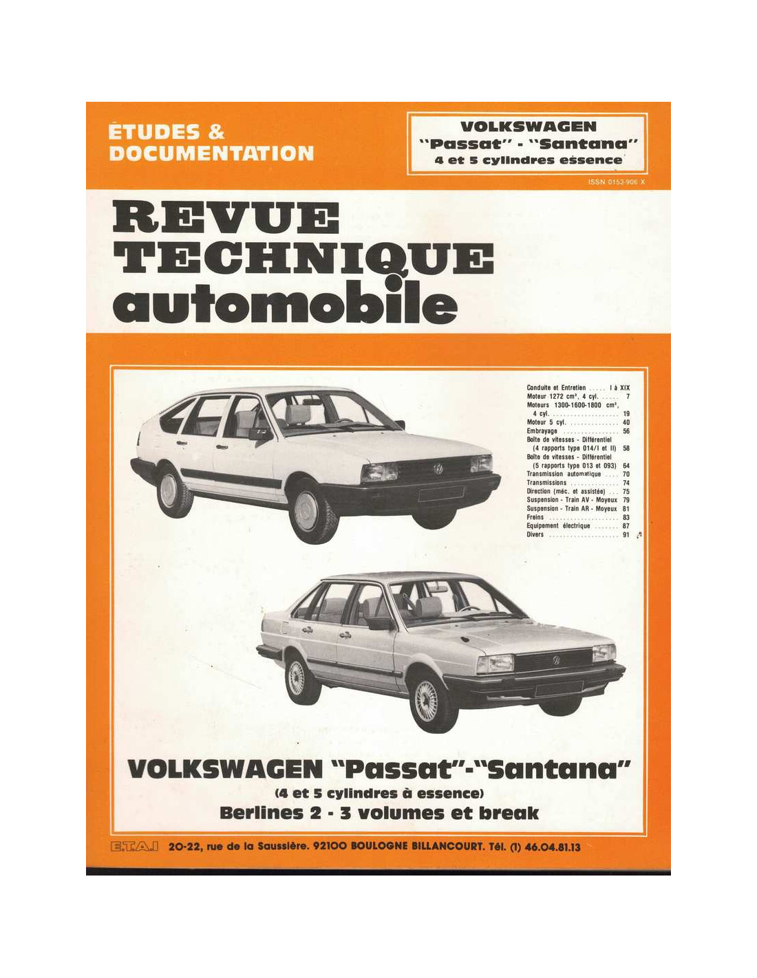Etudes et Documentation VOLKSWAGEN PASSAT et SANTANA - 4 /5 CYLINDRES ESSENCE